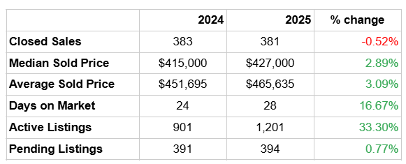 What’s Driving Prices in 2025 - Homes between $300,000 and $500,000 continue to dominate the market and the bulk of the sales. This year, Luxury sales were fewer, especially those in the $1 million+ range; however, the luxury homes that did sell in 2025 sold slightly faster than they did last year.