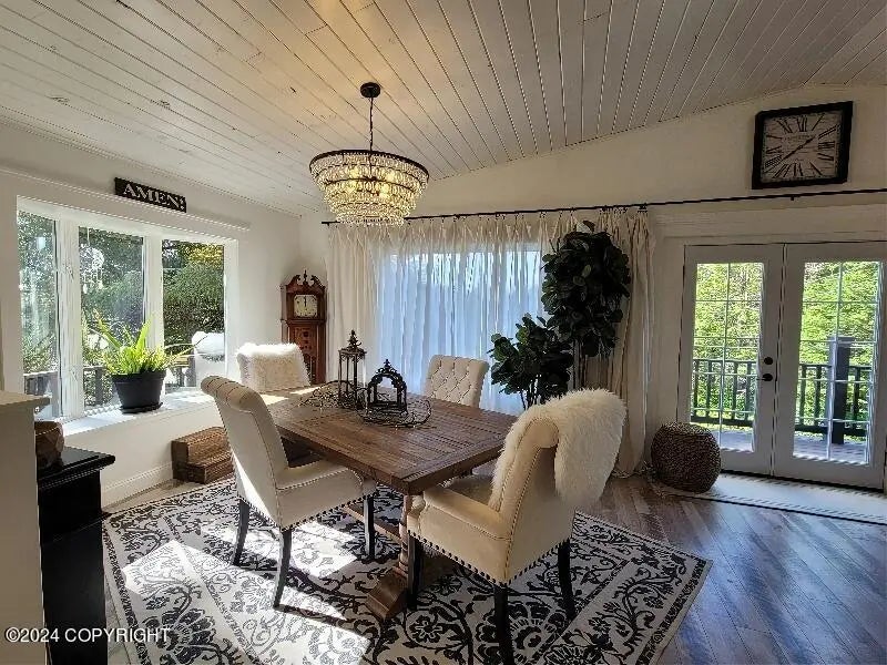 This contemporary-style home boasts a modern, well-maintained interior with freshly painted decking and exteriors. A stunning wooden staircase leads to an inviting open living space featuring vaulted ceilings, wainscoting, radiant heated floors, and an energy-efficient ceiling fan. French doors open to a lovely upper balcony, perfect for outdoor dining. ing. The bright kitchen and dining area include a breakfast bar, farmhouse sink, solid countertops, and a butcher block island with seating. The first primary suite offers a private balcony, walk-in closet, soaking tub, and separate shower, while the second suite provides mountain views, a spacious closet, and a full bathroom. The upper level also includes two additional bedrooms, bathrooms, and a large pantry. On the lower level, a generous living area with a wood stove, two more bedrooms, a half bath, and a laundry room with ample storage. The beautifully landscaped and fully fenced yard features a manicured lawn, renovated decks, a covered patio, and a grilling area. An asphalt driveway and gravel parking area provide plenty of vehicle space, including options for boat or RV parking ...Welcome home!