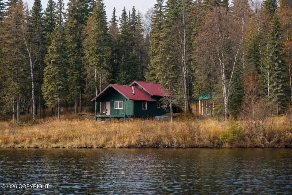 Private retreat at Shulin Lake! With an 18x28 cabin with open loft, wood stove, space to sleep 6. Includes outbuildings: 10x10 sauna with shower, outhouse, and 8x8 boathouse. Access by boat or floatplane in summer; skis in winter. Located 62 air miles from Wasilla, with a 1,400-foot gravel runway nearby. Fishing and hunting opps with Peters Creek and Kahiltna River access, plus a tree stand The property requires some maintenance.