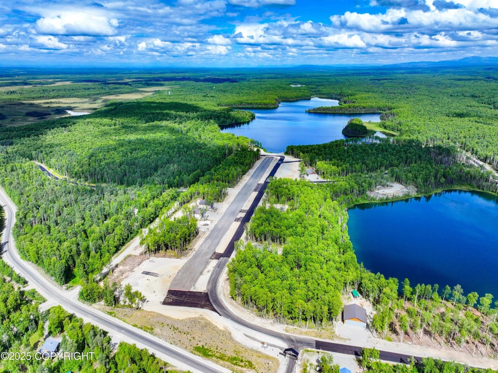 217' creekfront lot at end of E Kodiak Rd. Caswell Creek offers clear water, salmon, and trout right out your front door. Level, gravel-based lot inside Skyland Airpark, a 187-acre gated aviation community with 3 lakes, 200+ acres of water, 1,600' of creek frontage, 1,500' RAP runway, and 60' hard-surface taxiways. Great spot for outdoor and aviation use. Build your dream hangar/chalet