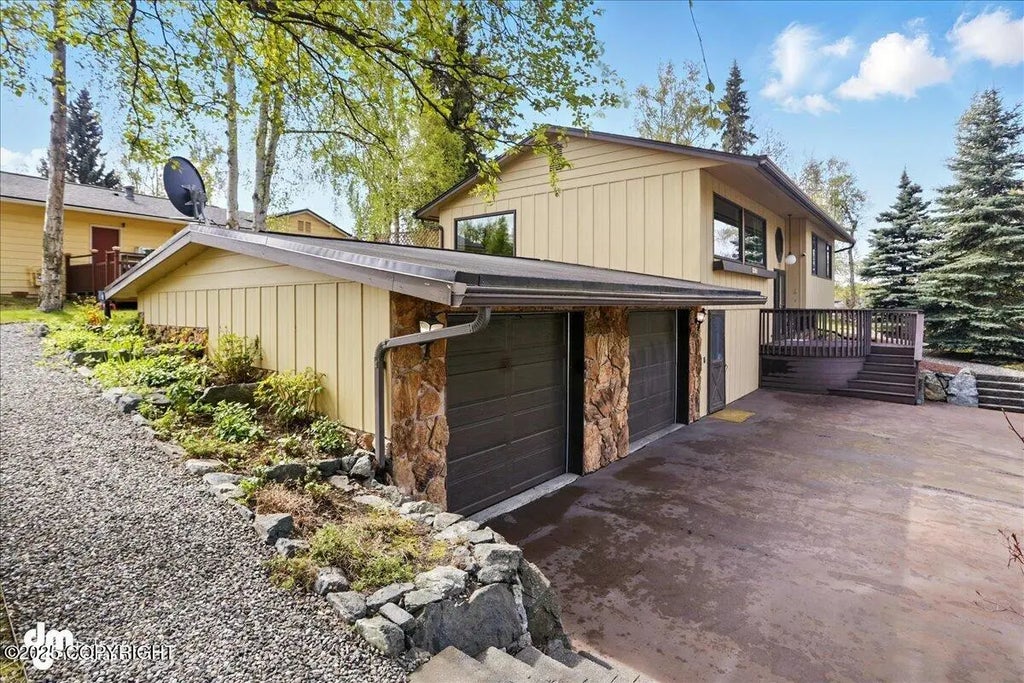 This beautifully maintained home sits in a quiet South Anchorage cul-de-sac on a corner lot in a highly desirable neighborhood. Pride of ownership shines throughout—original owners had no pets or children. Enjoy a private, south-facing Trex deck, mountain views from the dining room, and quick highway access. All 3 bedrooms and 2 full baths are upstairs; the lower level features a large family room, half bath (with space to add a shower), and separate utility room. Workshop with exterior entry could be converted back into a 3rd garage bay. Recent updates include new LVP flooring, new toilets, vanity, paint, and security system. Excellent schools and close to parks, trails, and Huffman businesses.