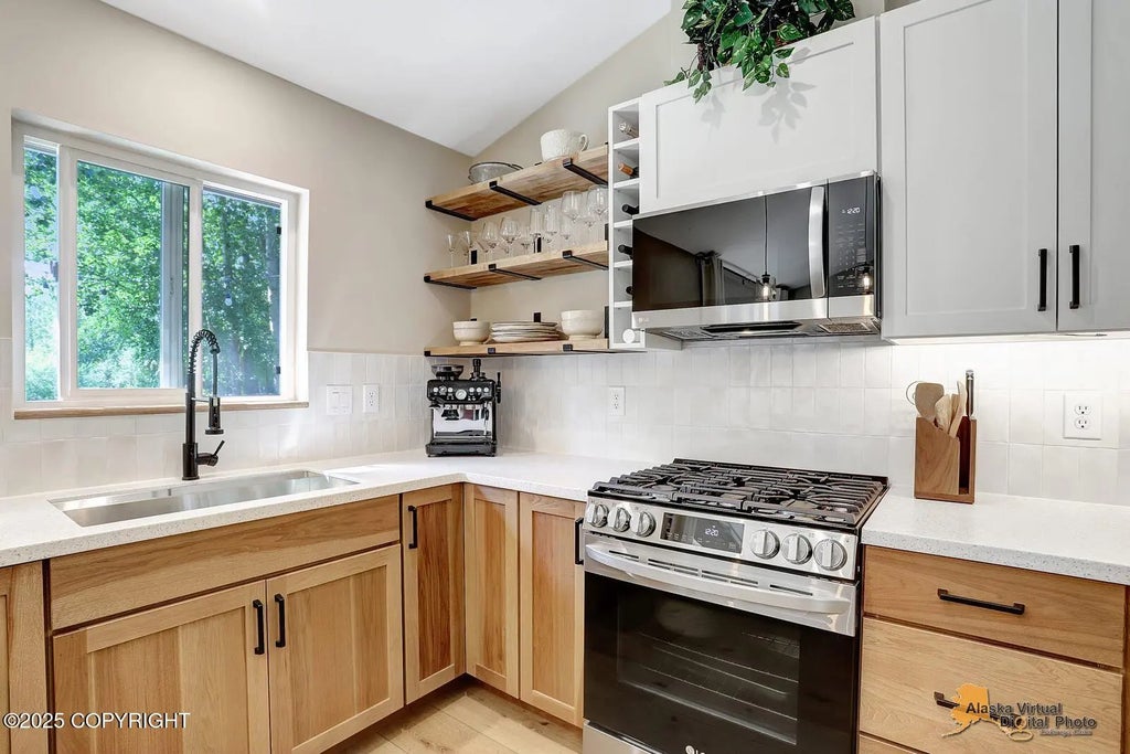 This is more than a remodel—it's a lifestyle upgrade. Don't wait; this stunning, move-in-ready home is a scroll stopper! This home has undergone a professional and complete, top-to-bottom remodel. Located in the heart of Palmer, Alaska on .46 acres, this 4 bedroom, 2.5 bathroom, 1,617 sqft offers a seamless blend of modern design with a warm touch. It'll make you want to call in sick so you can stay at home by the cozy brand new Blaze King wood stove, or retreat to the back yard in your fully fenced, landscaped yard...Even Mr. Wilson couldn't peak through and bother you.