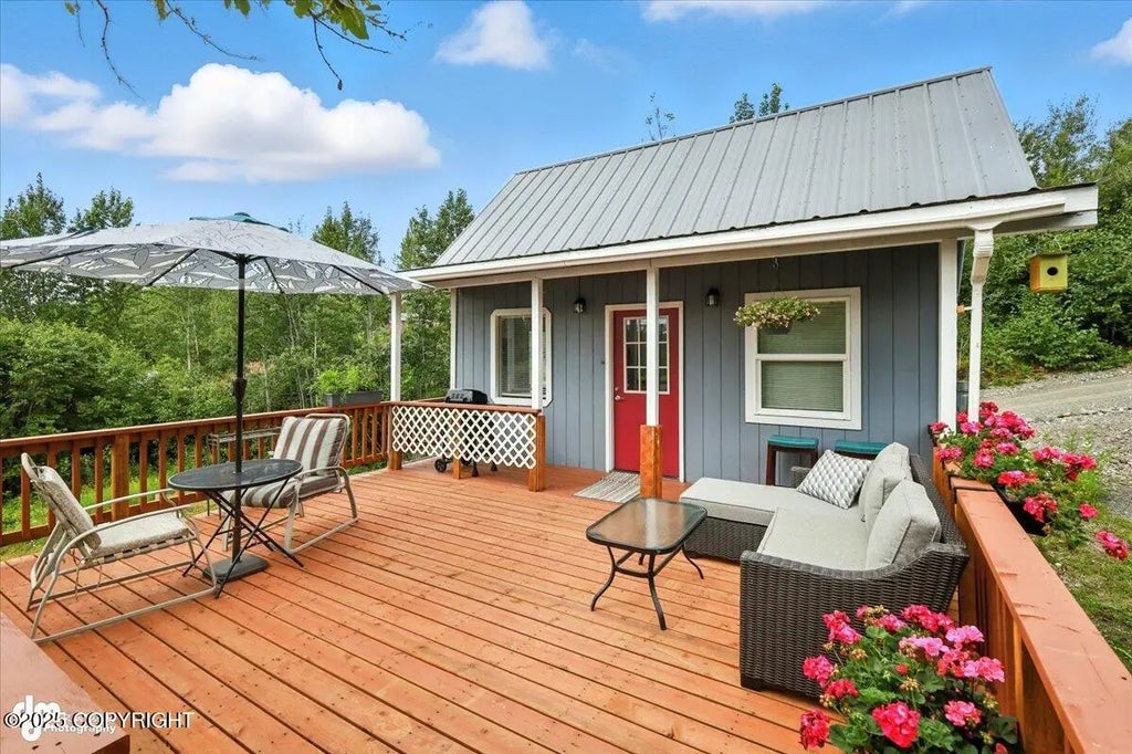 This tastefully updated 3 story home has been recently remodeled. The home is set in a naturally landscaped private location and feels like you're in a cottage that's perched amongst the trees. Inside you'll find a recently updated bright space that includes a loft bedroom and a bedroom addition on the first level. Bathroom, laundry closet, large walk in shower with seating and an open kitchen to living room layout. The front of the home has covered parking provided by the large deck. additional parking, fire pit area, gardening planters and flower beds and they cherry on top a brand new septic system. Close to recreation and trails, shopping and schools. All furniture and appliances stay with the home. Clean and move in ready.