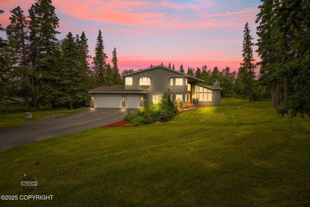 Experience Sequoia Estates, one of Hillside's most sought-after neighborhoods with oversized lots and rolling hills! Situated on an oversized lot, this home offers skylights and soaring ceilings, and a front wall of windows fill the home with natural light, while the spacious layout makes living and entertaining effortless. Primary suite offers its own wood-burning fireplace for cozy nights in. The serene, private backyard features a massive deckperfect for summer entertaining or enjoying peaceful winter evenings. This spacious kitchen is ready to handle everything from quiet weeknight dinners to lively holiday gatherings. Host game night in the entertainment room, or unwind in the hot tub (yes it works!), and both the projector and screen stay for your own home theater experience. Updates include newer windows and appliances, Pre-inspection complete. A 3-car garage, huge driveway, and RV/boat parking off Carita mean space for all your toys. Two sheds provide even more storage, freeing up garage space. This custom Alaskan home blends privacy, community, functionality, and elegance!