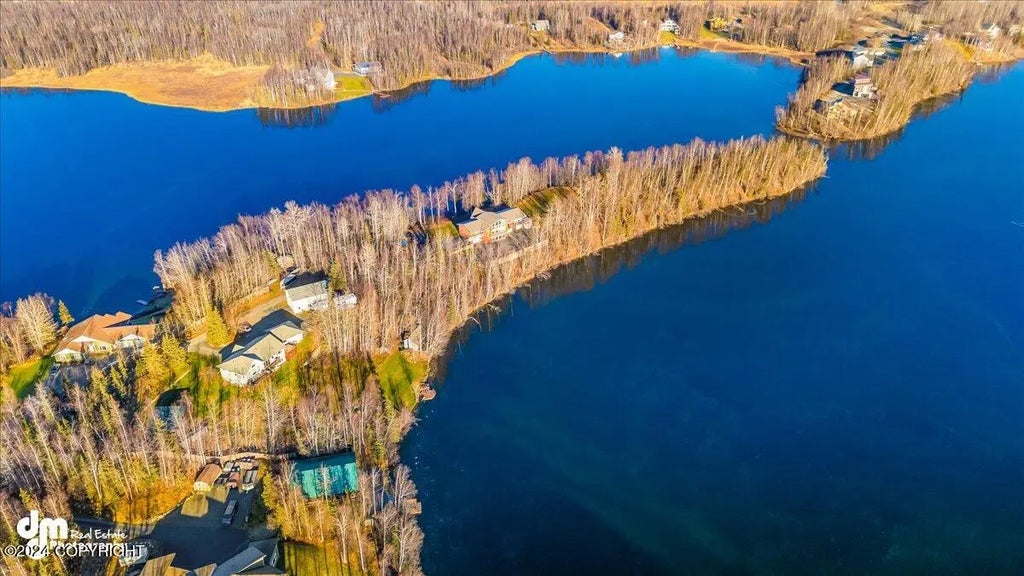 LAKEFRONT PENNINSULA on Memory Lake w/ 1,830 lineal feet of shoreline on 3.86 acres of private land on a FLOAT PLANE LAKE. 4,126 RES-SF 3 bedroom, 3 bath lake home with three family rooms and a 1,986 sqft 4 car garage/shop. Three levels with stairs. Private dining room, sauna, large Trex deck, vaulted ceilings, hardwood flooring, RV parking. private hiking trail to the pointe. SOLD AS IS 1000 E Loch Ness Court, Wasilla, AK 99654 - Henderson Family Trust MLS# 25-10532 Memory Lake luxury home located on a 3.86-acre private peninsula with approximately 1,830 feet of lake front. The unique property located just north of Wasilla features a very private, panoramic view of Memory Lake from the south and the north with mountain views of Hatchers Pass and Pioneer Peak. Only a ten minute drive from downtown north Wasilla, AK Float plane lake with a private dock for aviators. 360 ft. private asphalt driveway. 4,136 SF-RES home built in 1986. 3 bedrooms 3 family rooms (one on each level) Loft is plumbed for a 4th bathroom 3 full baths 4 car garage/shop with 1,986 sqft provides ample space for storage and hobbies. Sauna Hardwood flooring Private dining room Breakfast nook/bar Large office Spacious Trex deck Septic tank and private well Natural gas forced air heating. Large asphalt upper parking area and lower-level parking area that has ample space for an RV, boat, toys and trailers. Four wheeler switch back trail to the float plane dock and a trail through the woods of your private peninsula. PROPERTY IS BEING SOLD "AS IS - WHERE IS" Seller will finance with a full price offer and 50% down payment. Showings by appointment only - 48-hour notice required Drone videos under photos.