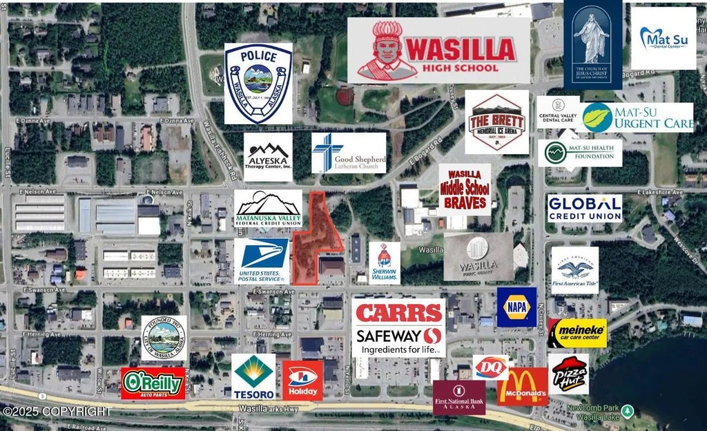 Development opportunity in the heart of Wasilla. 2.14 Acres of prime commercially zoned land between E. Bogard Road and E. Swanson Ave, east of Main Street. Robust traffic counts and nearby frequented businesses. Buy now before the Wasilla Main Street Rehabilitation Project brings even more traffic, stop lights/signs, infrastructure, and vitality to the already bustling/growing area. See photos. Nearby Businesses/Community Institutions include: United States Postal Service Matanuska Valley Federal Credit Union Sherwin Williams Carrs Safeway Wasilla Middle School Wasilla High School Wasilla Police Department Alyeska Therapy Center Inc. Good Shepherd Lutheran Church Wasilla Public Library City of Wasilla - City Hall O'Reilly Auto Parts Tesoro Holiday First National Bank Alaska Dairy Queen McDonald's NAPA Auto Parts And More! Two lots are being sold together or potentially separately. See MLS #25-10588 for 4.42 Acre multiple parcel listing. Parcel ID 19533 510 E Bogard Road, 99,317 SF Parcel ID 61161 453 E Swanson Ave, 93,218 SF