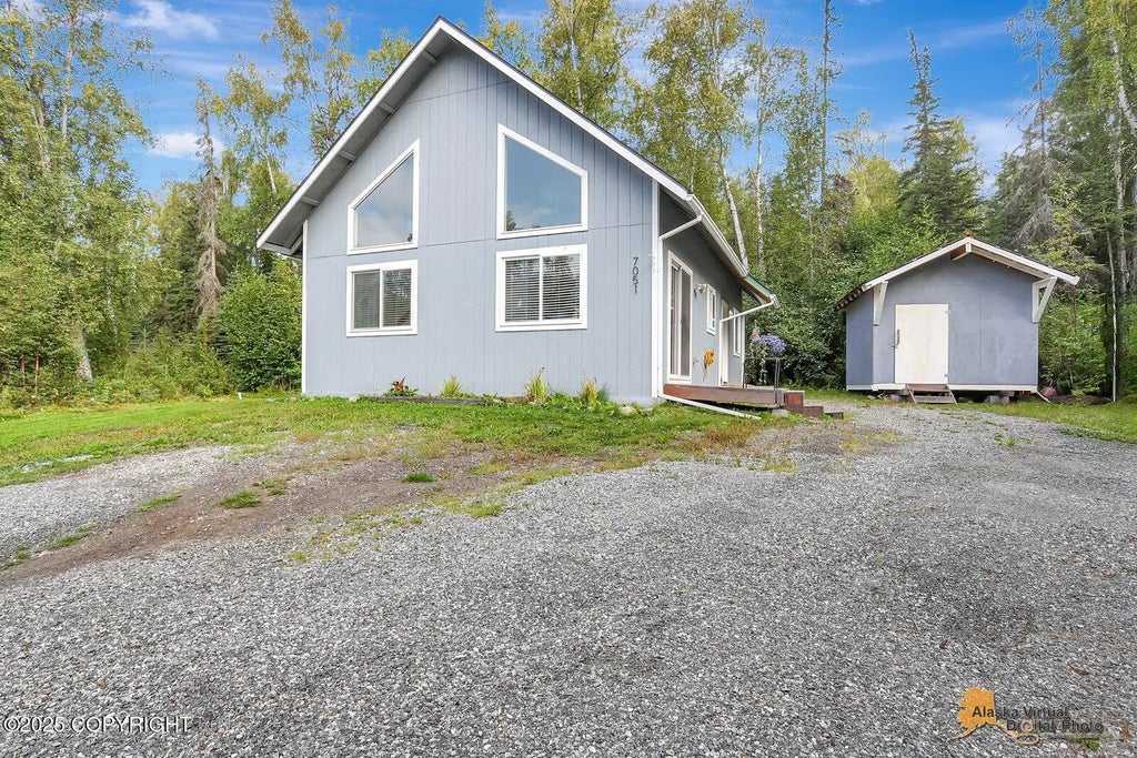 Nice Challet style home with large shop! Yup, you can have chickens! Have it all on this 1 acre lot. Shop has tall doors for parking a motor home, boats or other Alaska toys, mezzanine for additional storage and wonderful work bench too. Home has 2 beds on the main floor and loft main bedroom for privacy. This cozy home and shop is ready for you and your toys.