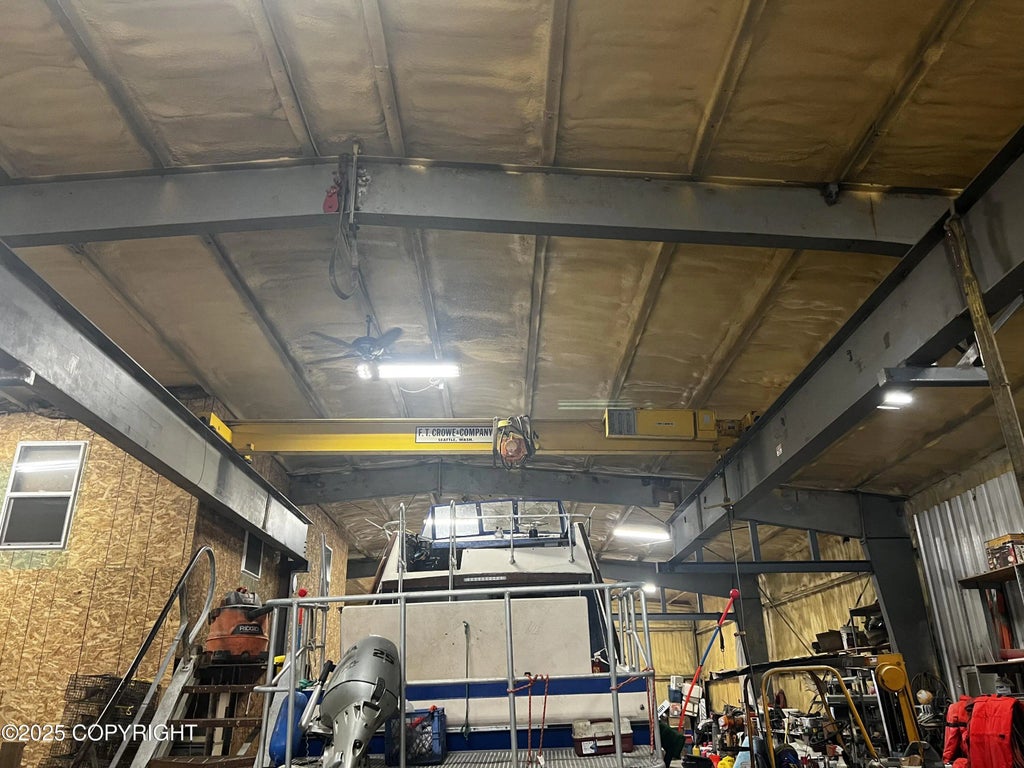Prime 8+ acre industrial property in Kasilof featuring a 5,000 sq ft insulated shop with in-floor heat & drains, overhead crane, 14 ft doors, office, restroom, wood boiler, carpenter's room, well & septic. Perfect for marine, equipment repair, or contractor operations. For sale $1.2M or flexible lease/lease-to-own options. Shop includes LED shop lights, 300 gallon oil tank, in-floor heating system, concrete pad 7 inches deep to secure large equipment safely, garage doors front and back allowing for drive through of equipment, trucks, boats on trailers etc., Well & Septic put in in 2011 - 1000 gallon tank 62 ft well, framed out offices & bathroom with plumbing, electric outlets every 4 feet around shop, 4 - 220 outlets, 4 inches of foam insulation in walls, metal roof.