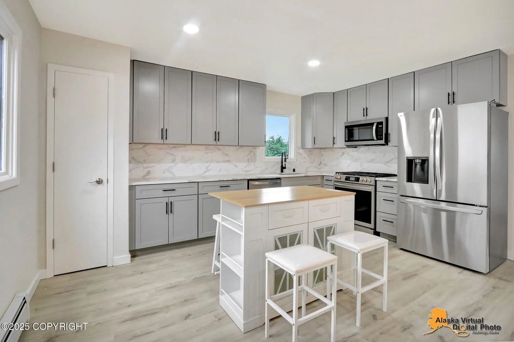 Gorgeous, extensively remodeled home in a peaceful, well-established East Anchorage neighborhood. Boasts a new roof, new driveway, and new boiler for ultimate comfort. Stylish upgrades throughout blend contemporary design with functionality. Ideally located near multiple trailheads, perfect for outdoor enthusiasts. Move-in ready, offering the best of urban convenience and Alaska's awesomeness Car enthusiasts and hobbyists will appreciate the oversized, heated two-car garage, offering ample space for vehicles and projects. Unwind on the rooftop deck, soaking in breathtaking Chugach Mountain views. Close to schools, shops, and dining, this R2A multi-family zoned property blends urban convenience with Alaska's natural beauty, offering potential for additional units or investment opportunities.