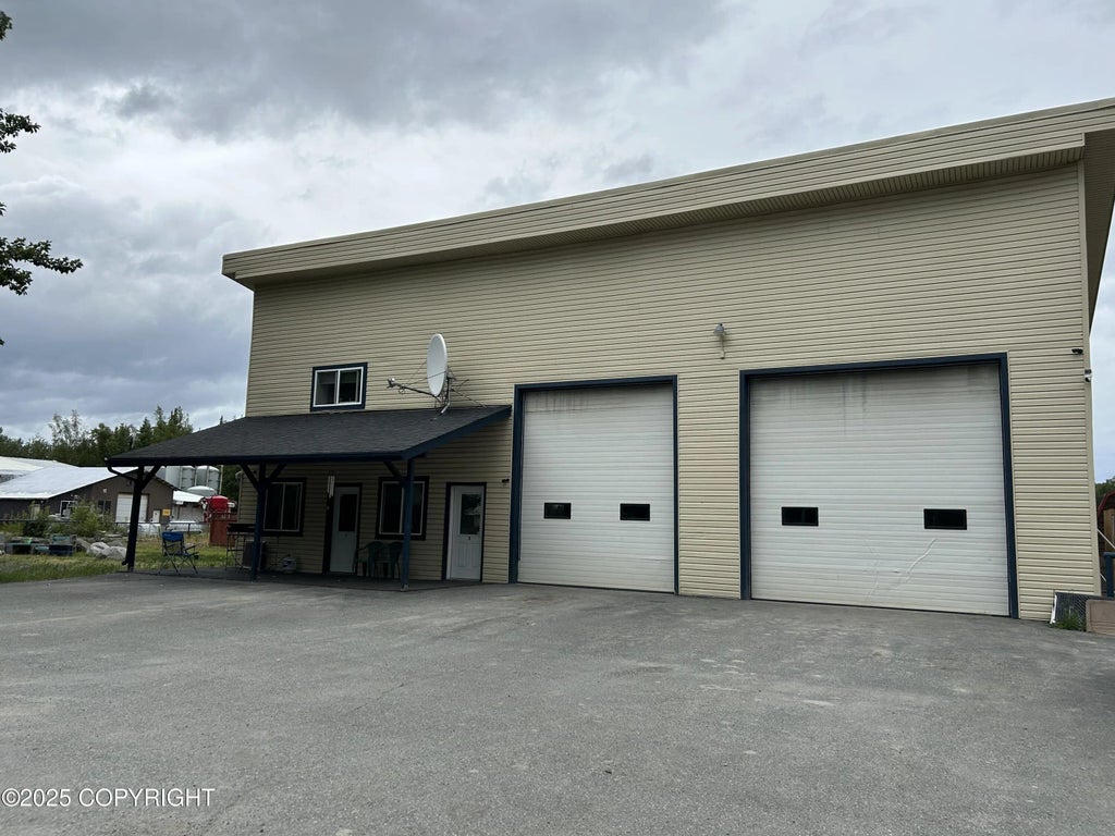 Nicely kept unique duplex w/two 1-bed 1-bath apartments with appx. 1600sqft garage and a huge yard 2.73 acres cleared, leveled and gravel. 2-overhead 14' garage doors, ceiling gas heat, spray foam insulation, floor drain, water softener, landscaped yard area with sprinkler system. Both apartments have own washer & dryer, 1st floor infloor heat, 2nd floor baseboard heat, spacious bedrooms.