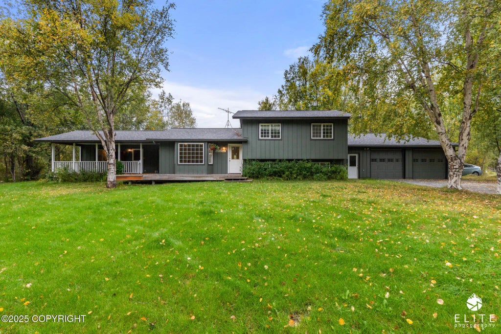 Tucked away on 1.48 private acres, this spacious 6-beds, 3.5-bath home offers endless possibilities. With 2 full kitchens, it's ideal for a duplex setup, multi-generational living, or extra rental income. Enjoy a large, oversized garage, newer roof, and fresh interior/exterior paint. The beautifully landscaped yard features a cozy firepit area, perfect for entertaining! Large mudroom with sink, laundry room, and large walk-in butler's pantry area. Covered deck area. Fenced in back yard. Privacy, space, and versatility all in one property! Surrounded by land this flag lot feels even more private. Fantastic location with easy commute and close proximity to Palmer for shopping and dining. Duplex/ADU set up- 1 bed/1 bath; Home- 5 beds 2.5 baths