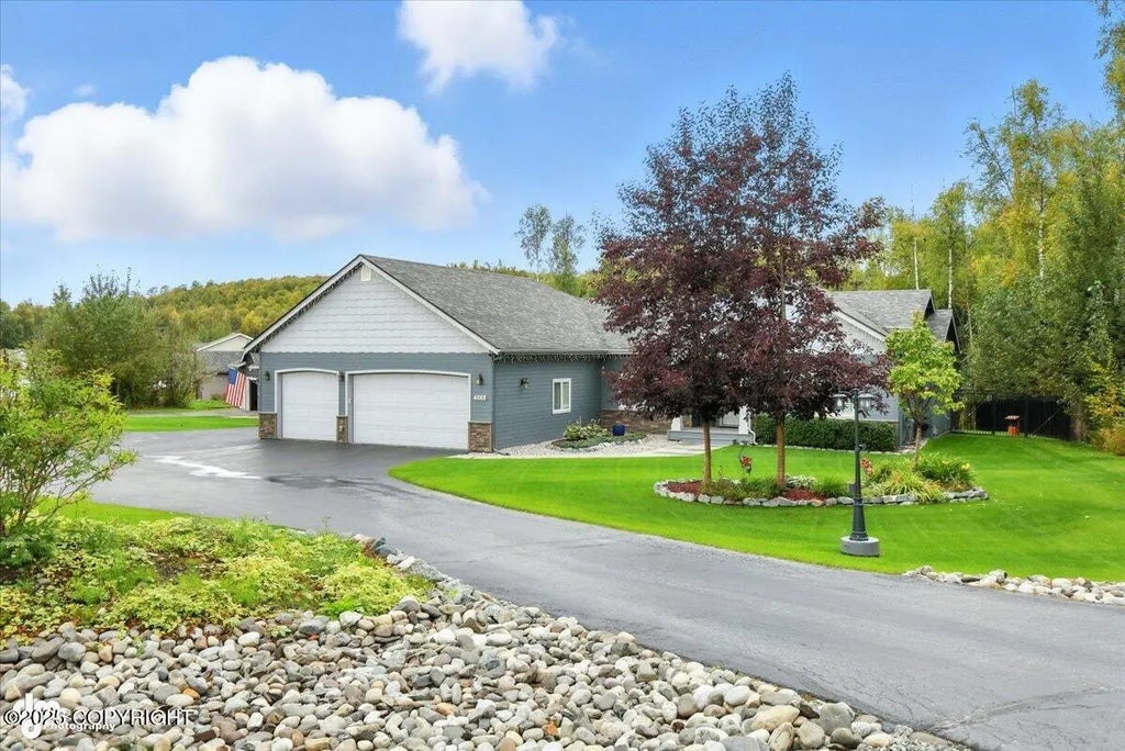 This exceptional home features 9-foot vaulted ceilings with recessed lighting and an open concept layout. The spacious kitchen boasts elegant granite countertops, pendant lighting above the raised breakfast bar, and plenty of cabinetry, including a pantry for added storage. The exterior leaves a striking first impression with lampposts, meticulous landscaping and a large, paved circular driveway. Inside, you'll find a wealth of thoughtful details, from custom window treatments to a cozy gas fireplace that will keep you warm during chilly winter nights. Each bedroom is equipped with a ceiling fan for added comfort, including the vaulted ceiling in the primary suite. The luxurious primary bath features a double vanity, a corner soaking tub, and a convenient linen closet. Step outside to make the most of long summer days on the expansive 400-square-foot Trex deck, complete with a natural gas hookup for your BBQ. The home's $40,000 PLUS in upgrades include an on-demand water heater, and a water softener, sleek, black aluminum fencing, a 240-square-foot two-story shed with electricity. You'll also appreciate the convenience of a generator switch and a 200-amp electrical panel. Need space for your toys? The oversized 3-car garage offers 10-foot ceilings, 8-foot doors, a utility sink, and an in-floor drain. There's also additional RV parking with an electrical hookup for all your outdoor adventures. This home is full of thoughtful details and exceptional design a must see to fully appreciate.