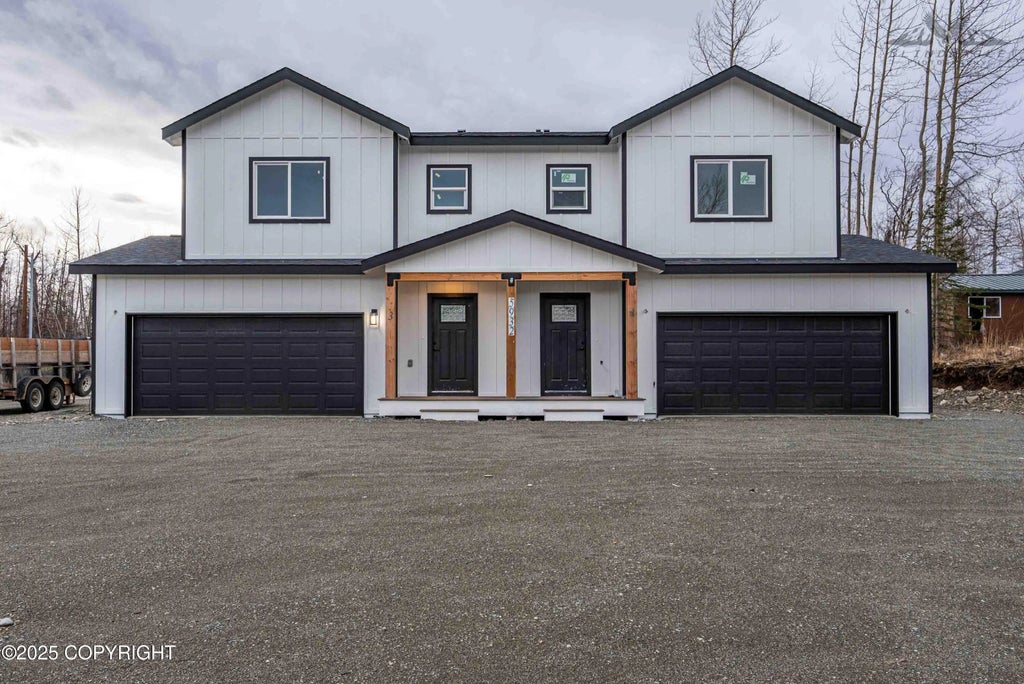 Nestled in a desirable location off Bogard Road, these stunning recently constructed duplexes offer an exceptional living experience. Each of the four units features 1,400 square feet of thoughtfully designed living space, complete with 4 bedrooms, 2 bathrooms, and a spacious 2-car garage. LVP flooring and an open-concept layout, seamlessly connecting the kitchen, dining, and living areas. Upstairs, you'll find a convenient hallway laundry area with easy access to all four bedrooms. Perfectly situated for commuters, these duplexes provide a prime location close to Wasilla while still offering a quiet setting. **Photos Similar**