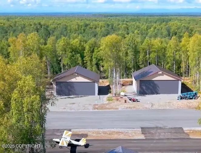 2,500 SF runway-front hangar at Skyland Airpark. 16-ft clg; 44'x16' Hydra-Lift door, 15'5'' clr + 4,000-lb lift point; (2) man doors; 1 OH garage door. Ext: LP SmartSide lap, 26-ga metal wainscot, 26-ga standing-seam roof, 5/12 pitch, 2-ft eaves. Found: concrete footing/perimeter, 5'' rebar slab. Int: pre-wired elec, propane shop heater, LED lights, multiple windows. Mezz 16'x34', left unfinished for buyer build-out. Pricing: $495,000 finished pkg (bath, janitor sink, back deck, well, septic) or $465,000 AS-IS shell. Amenities: secure gated airpark, 1,500-ft RAP runway, hard-surface taxi roads, floatplane/boat ramp, community dock, Prop-Wash Pavilion, trails.