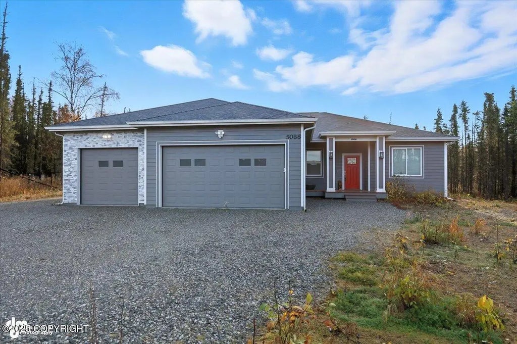 Large ranch style home that is close to the conveniences of Wasilla, while being far enough to give excellent privacy. This property exhibits superb craftsmanship throughout and modern conveniences, such as in-floor heating, HRV, solid surface counters, high ceilings, LVP flooring, and a spacious 3-car garage. Additionally, this property sits on a level lot and has a large fenced area that is ideal for pets. Tile used in bathrooms. Large pantry. Shorter driveway for easier snow removal in winter. Double sink vanities. Walk-in master shower. Oversized walk-in primary closet. Heavily treed lot.