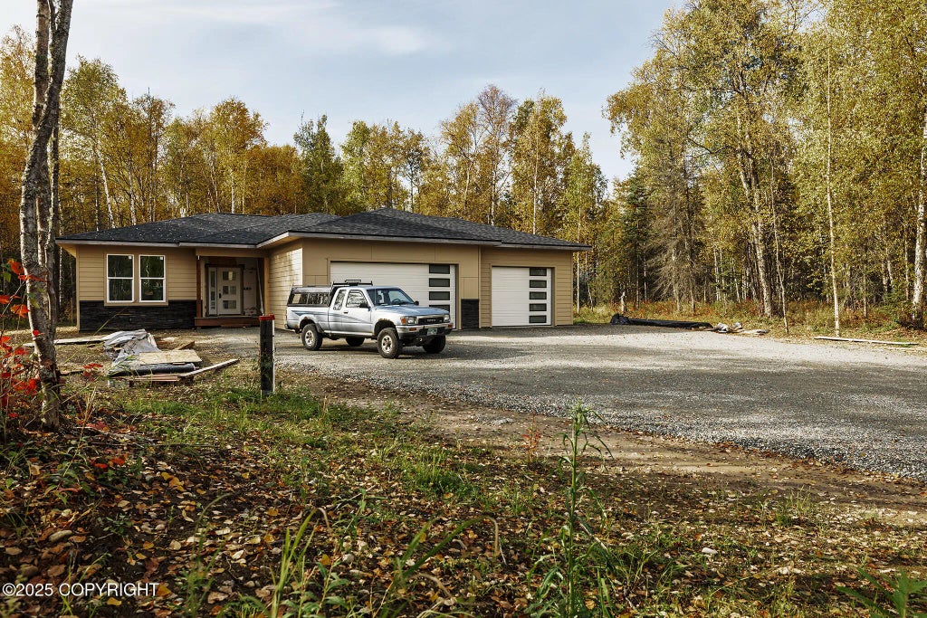 Modern ranch with rustic charm on 1.29 acres! This sought-after split-bedroom layout features hickory trim, custom cabinetry, and upgraded 5-panel doors. A spacious entry with wood accents, storage cubbies, and laundry access sets the tone for thoughtful design throughout. The living room showcases a floor-to-ceiling stone fireplace, while the chef's kitchen boasts an 8-ft island, black quartz countertops, tile backsplash, and a butler's pantry. The owner's suite includes dual sinks, a private toilet room, and a luxurious 6-ft soaking tub. Outside, enjoy two covered decks, a large private backyard, and plenty of RV parkingall with the peace and privacy of a 1.29-acre lot. This home is nearing completion and will be move in ready by the end of October!