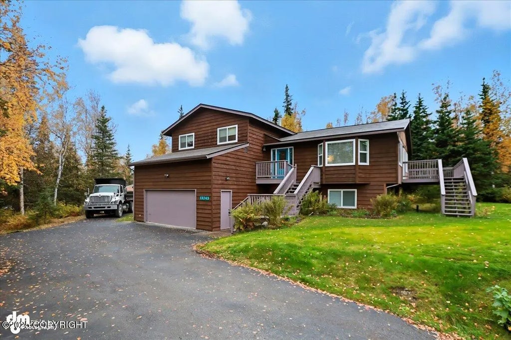 Inlet views in winter, privacy in summer, in this quiet location off Huffman in South Anchorage. Great four-level home with eat-in kitchen, formal dining area and living room with fireplace and access to deck is loaded with tons of natural light. Primary has updated master with walk-in shower on upper level with two additional BR's and bath. Mid-level family room in additional to lower level. recreation room and 4th bedroom. There are 2 storage sheds and RV parking area. The garage has high ceilings with a storage loft across the entire width. New septic system 2025 was landscaped and hydroseeded, new exterior paint 2025, new garage paint 2025. New roof 2012. Newer windows throughout. Pre-inspected; see invoices for repairs completed. Mechanical serviced 2025. HSA Home Warranty provided. HOA provides private road maintenance dues $400.00