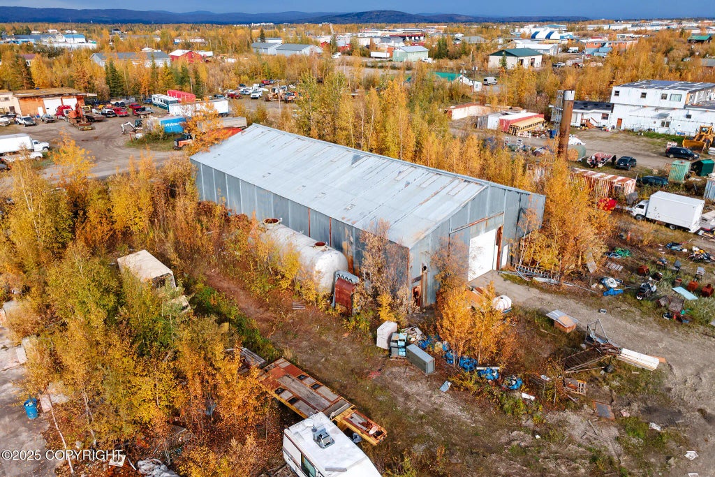 Welcome to 2179 Donald Ave! This unique property, located south of Van Horn, has 6.3 acres across 6 lots, all zoned Heavy Industrial, making it ideal for entrepreneurs and commercial businesses alike. The main structure boasts a spacious 5,406 sqft shop floor, a specialized 1,280 sqft woodshop, and a comfortable 1,680 sqft living area featuring 3 bedrooms and 3 bathrooms. Standout features include a hydraulic lift with a capacity of about 8,000 lbs, tall garage doors for easy access and maintenance, and a dedicated shop office and on-floor bathroom. Additionally, the property includes a 6,144 sqft cold storage barn with durable steel siding, ensuring materials and equipment are well protected from the elements. Positioned in the center of industrial Fairbanks, this space offers excellent access to essential resources and services, making it a prime location for your business endeavors.