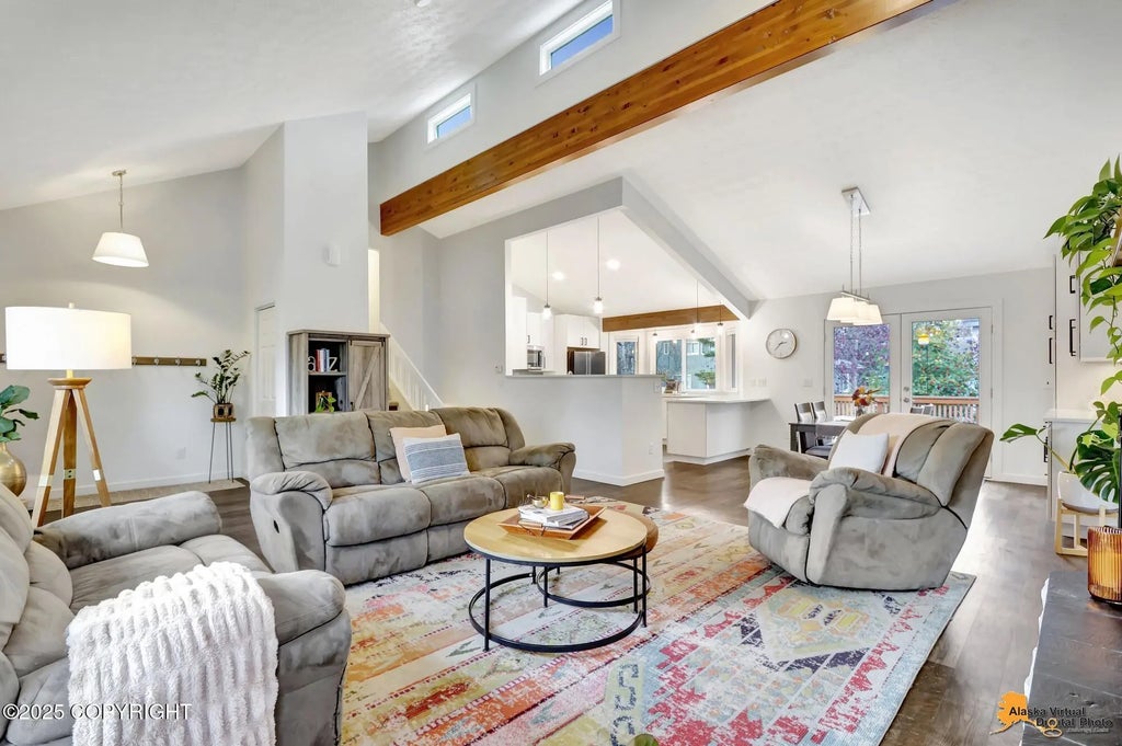 Thoughtfully updated throughout, this south ANC tri-level blends modern style with functional design. The main floor Great Room features soaring ceilings, an updated chef's kitchen, open dining, and a spacious living room with a cozy wood-burning fireplace—perfect for entertaining. Two versatile secondary family rooms offer endless possibilities for guests, hobbies, office, playroom, or home gym. 2-car garage, nearly 200 SF of detached shed/shop space, an expanded multi-level deck, and a sun-filled south-facing fenced yard are ideal for BBQs and Alaskan living. With numerous updates including triple-pane windows, roof, mechanical, flooring, and fresh paint and carpet, this home is ready for you to make it your own!