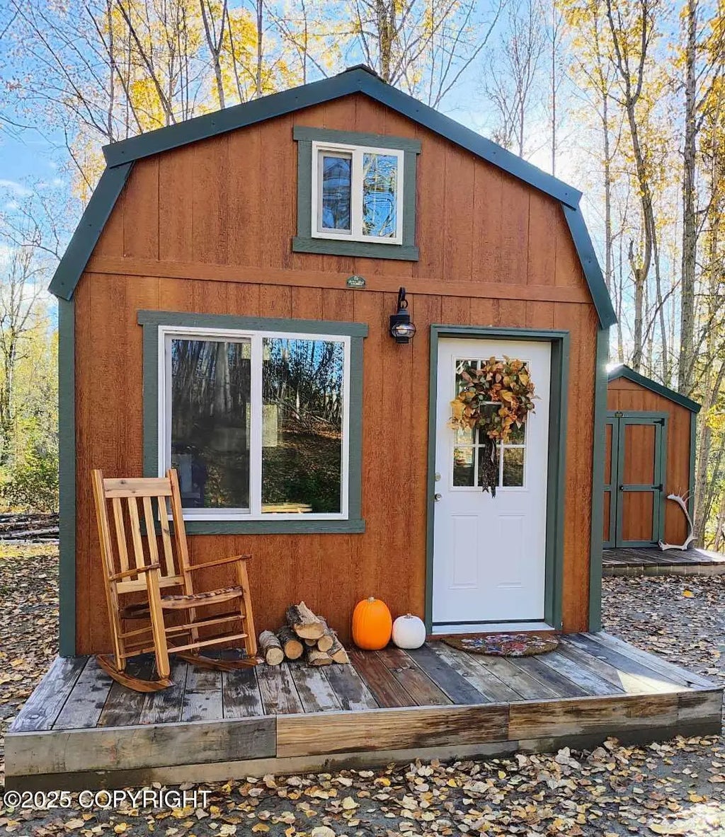 Owner Financing Available!! Brand New Construction! Gorgeous 3 Beds (2 Lofts and a convertible couch), 1 Bath off grid dry cabin, Turn key, fully furnished with toyo and generator! Sleeps 7. This is a must see!! Come cozy up in your own private quiet getaway and take in the views. There is plenty of room to expand two whatever your dreams are made of. More... Cabin is wired for electricity and electric is at the road for easy hook up, if desired! Cabin is great for recreational or all year living! All furniture & appliances included. Everything in cabin is brand new!* 12'x28' Cabin includes: New Toyo Stove Lazer-302 150 Gallon Heating Fuel Tank New Craftsman 6000 Watt Generator Wired for Electric Hauled Water System Picnic Table Fire Ring Reclaimed Wood Decks* Kitchen: Brand New Appliances! Refrigerator Breakfast Station 2 Burner Portable Stove Dry Sink with Water Tank Refurbished Table Set* Cast Iron & Non Stick Pans Kitchen Towels Bathroom: Shower with water pump Bath Towels Dry Sink with Water Tank Flush Toilet w/ Fresh & Black Water Tanks Convertible Living Room: Sectional Couch Converts to King Bed. Corduroy Blanket Ladder Storage Loft #1: Queen Size Bed Sheets & Bedding Pillows 2 End Tables Bookshelf/Storage Loft #2 Full Size Bed Sheet & Bedding Pillows End Table Bookshelf/Storage Nature lovers paradise! Roses, Cranberries, Raspberries, Fireweed, Elderberry and Bolete Mushrooms on property. Lots of wildlife! Moose and Bear in the area. Minutes from Goose Creek, Fish Creek Susitna River, Little Su, and Big Lake. Salmon and trout fishing at Fish Creek. Minutes from public recreation areas. Minutes from Knik Arm. 45 minutes from downtown Wasilla. 30 minutes from gas and groceries. 90 minutes from Anchorage by car. 3 hours from Denali National Park. Owner financing: Escrow setup through First National Bank of Alaska. 30k down, 7% over 7yrs.