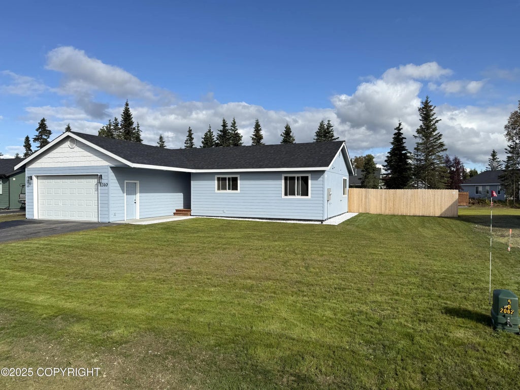 Welcome to this sleek, modern ranch-style home, where vaulted ceilings and expansive windows flood the home with natural light. Nestled in a serene neighborhood, this single-story gem offers an open-concept layout designed for effortless living and entertaining. The primary suite is a luxurious haven, complete with a private bath boasting a walk-in shower, duel sink vanity, and a spacious walk-in closet. Two additional bedrooms, versatile for guests or a home office, share a stylish full bath with modern fixtures and a tub. Outside, the low-maintenance lot features newly seeded lawn and a cozy fire pit, ideal for evening relaxation. A privacy fence surrounds the property. Located just minutes from vibrant downtown Kenai, close to schools, and parks, this move-in-ready home blends contemporary elegance with practical charm. Don't let this light-filled sanctuary slip awayschedule your private showing today!