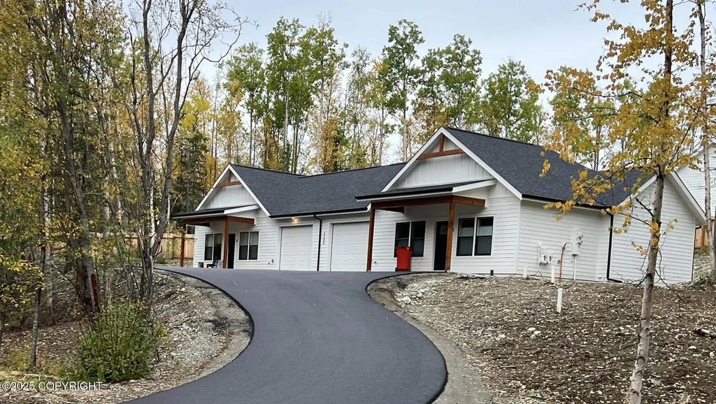 Rare opportunity to rent a stunning 2 bedroom farmhouse inspired duplex with 2 full bathrooms equipped with an oversized 1 car heated garage! Minutes from downtown Wasilla in a great commute location. Luxury LVP flooring throughout, quartz countertops, large island, stainless appliances, vaulted ceilings, tiled walk in shower. Landlord includes snow removal, Starlink Internet and trash! Full size washer and dryer in unit! Landlord would consider furnishing for the right tenant or corporate use. Pets are not preferred but may be considered with an increased deposit ($500) and additional pet rent ($75 per month) no cats. This is only the second time this unit has become available since it was built and is still in like new condition. Schedule a private showing today! Built with ease of access in mind with only 1 step required to enter from the front porch or heated garage!! Listing licensee has ownership interest in the property and is a licensee in the state of Alaska.