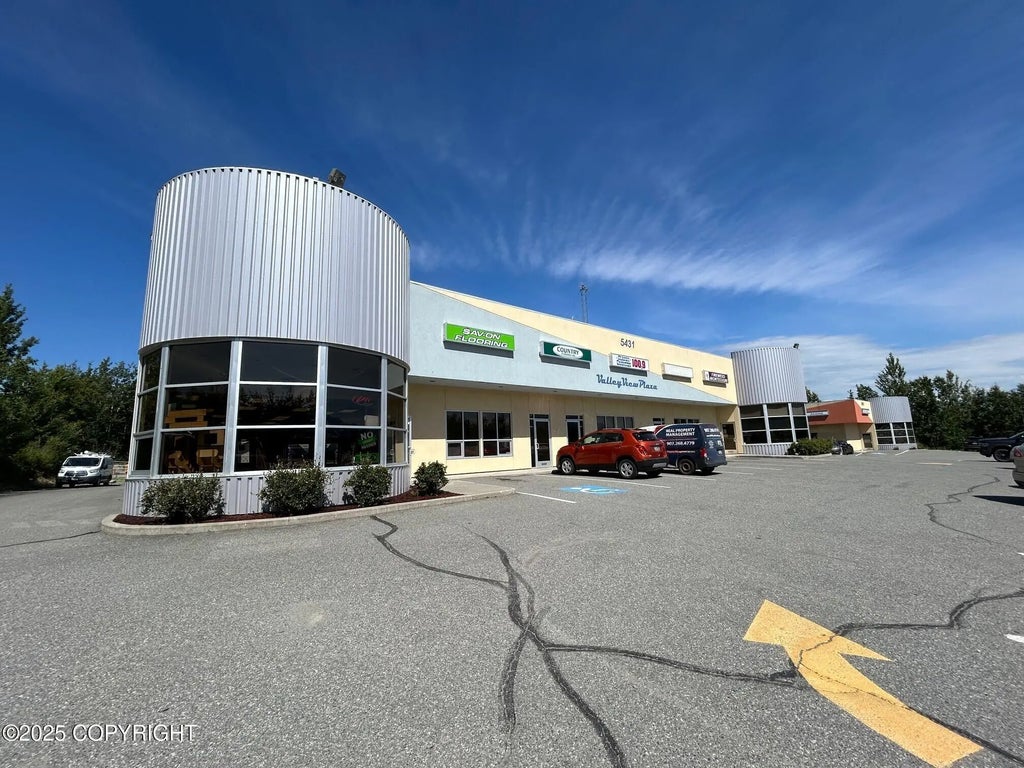 Prime frontage and visibility to the Palmer Wasilla Highway, this suite is 1,400 square feet leasing for $2.00 per sqft plus gas, electric and snow removal. Suite is built out with a front reception area and built in desk, multiple private offices, restroom, front and rear entry and parking. Top location available on the monument sign along with signage on the building.