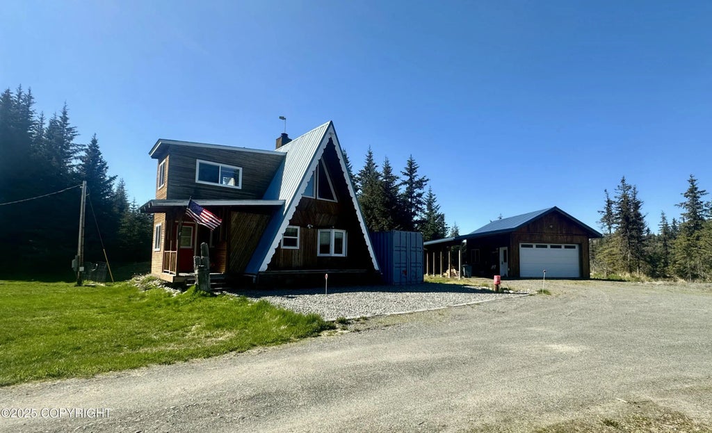 Escape to Your Own Private Retreat with this Adorable A-frame Chalet, nestled on nearly 2 Acres in the Serene and Sought-After West Hill area. Surrounded by Mature Trees and set back on a Circular Driveway, this Home offers the Perfect Blend of Privacy and Welcome. Enjoy the convenience of a Detached Garage with Carport, along with Two Fully Fenced Areas ideal for animals or a Garden. With plenty of space to grow, this property is ready for your Alaskan homesteading dreams. This is a rare opportunity to own a cozy, versatile home in one of Homer's most peaceful and scenic settings.