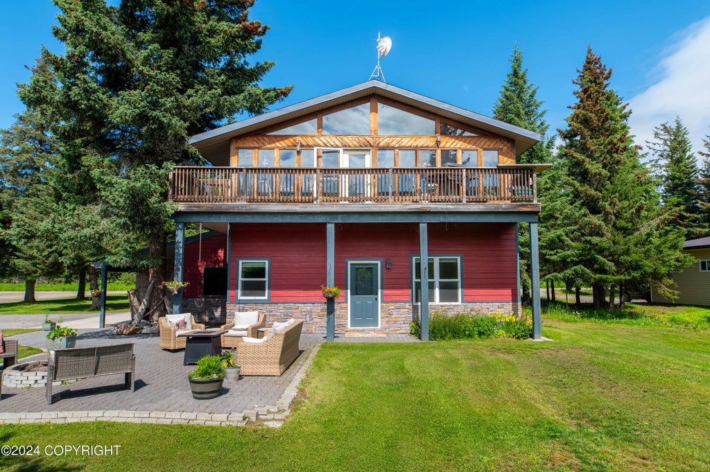 Beautifully Updated 5 Bedroom Home with New Roof & Septic System, Large Patio, and Barn. This large 5-bedroom, 3.5-bathroom home has been recently updated and has space for everyone! Located in a convenient neighborhood, spanning over 3,000 sq ft and boasting an array of modern upgrades throughout. Enjoy peace of mind with a brand-new roof, exterior siding, and septic system, ensuring durability and protection for years to come. The large open kitchen and dining area are perfect for entertaining, flooded with natural light and plenty of room. Bonus spaces include a large craft room/office, TV room, and a second-floor sun-soaked sitting room. Retreat to the expansive primary bedroom with his and hers walk-in closets and an en-suite bathroom complete with a jetted soaking tub and beautifully tiled walk-in shower. Four generously sized bedrooms provide additional space for family, guests, or a home office and/or gym. The backyard and outdoor space feature an expansive patio with a built in firepit and beautifully maintained yard. Perfect for enjoying sunny Alaskan days and relaxing evenings. The property also includes a barn with electricity & water - great horse property! Additional great amenities include an attached two-car heated garage, paved driveway, numerous bonus rooms, a cozy fireplace, and a large laundry room with a double washer and dryer. Conveniently located on a flat, maintained road and on natural gas, this home has it all!