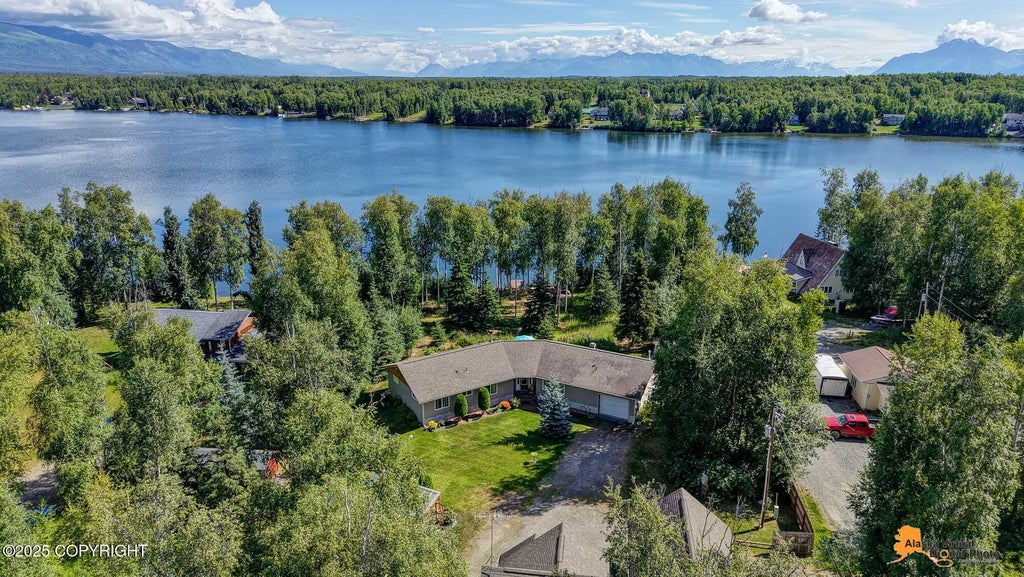 Welcome to your private lakeside retreat on scenic Seymour Lake! Nestled on a beautifully wooded 1.45-acre lot with 170 feet of pristine shoreline, this stunning property offers the ultimate Alaskan lifestyle with space, comfort, and versatility. The main residence is a well-designed 2,120 sq ft energy-efficient ranch-style home, built in 2013. It features 3 spacious bedrooms, 2.5 baths, and a bright open-concept layout perfect for entertaining or relaxing by the high-efficiency wood-burning fireplace. The primary suite offers a luxurious en-suite bath with a jetted tub and walk-in closet. The home also includes a large pantry, laundry room, tankless water heater, water softener, central vacuum, and security system.