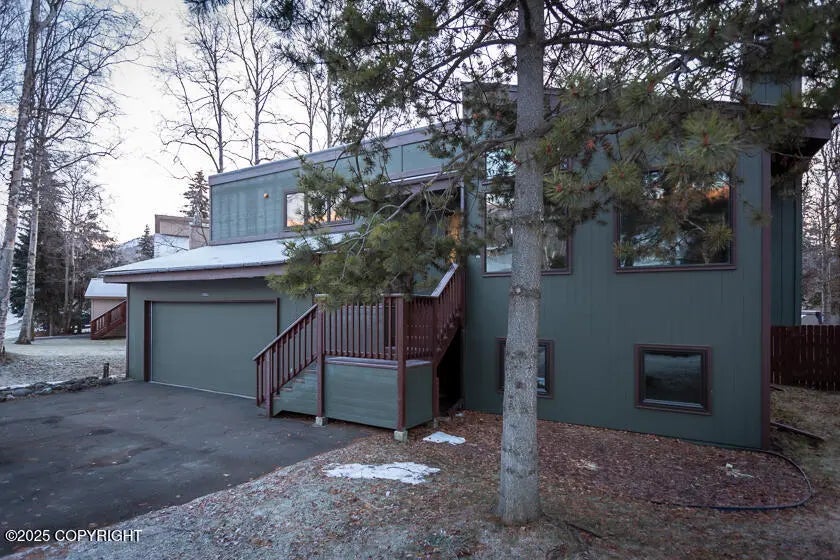 Custom Eaglewood Home in the Eagle River High School area. Minutes from JBER Kitchen with breakfast bar & formal dining area. Formal Living area & family rm with storage & shelving wall. All three Bedrooms, two full bathrooms and laundry on the upper level. Lighted walking trails throughout the subdivision. Back yard is fenced with a large deck for entertaining & play house for the children.