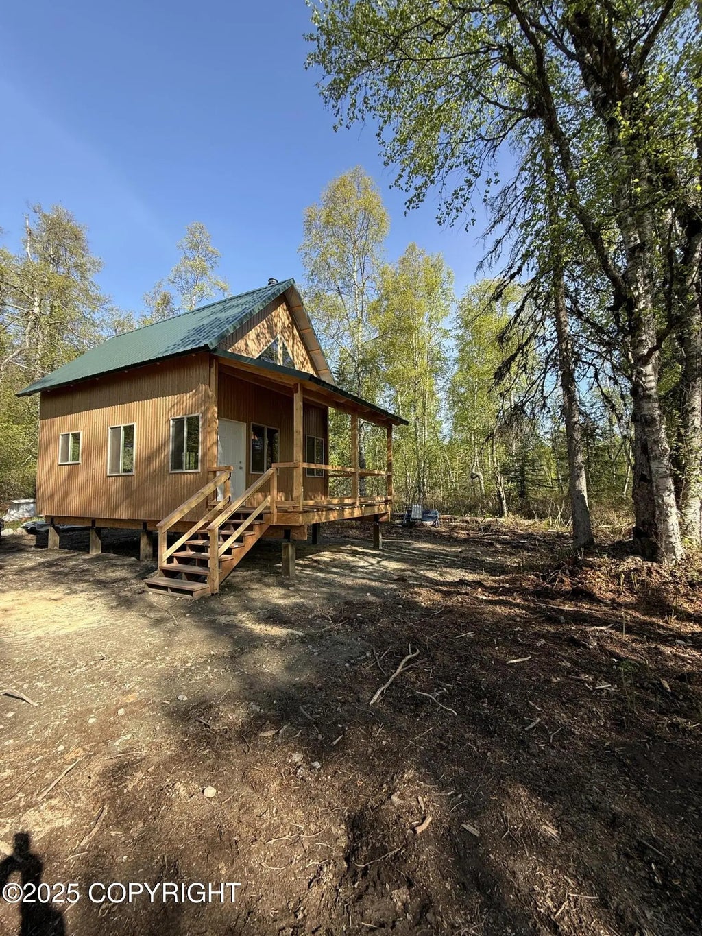 Are you looking for a remote property to start a homestead or just a weekend getaway? Look at this beautiful brand new cabin complete with metal siding, metal roof, loft, woodstove and outhouse all on 5 peaceful acres!! Trail provides year-round access for snow machines and ATVs. Make this your cozy winter getaway or your hunting cabin. Or just spend some time off grid! 16x24 cabin with 3/4 loft and 8x16 covered porch. 640 sq ft built on 8x8 treated pilings buried well below frost line to solid gravel. Custom made adjustable foundation brackets to compensate for severe freezing and thawing. 2x12 floor joist 16" on center with R-38 insulation. 2 layers of rigid foam in post frame walls and roof providing excellent R value and structure. Exterior covered in maintenance free metal siding impervious to harsh weather and animals. Fully wired with LED lighting and generator solar and inverter compatible. Interior is open floor plan with generous space and tongue and groove pine on walls and ceiling. 100% water proof vinyl flooring also maintenance free. Metal roofing on 12/12 pitch so will never need shoveling. All new construction never occupied sitting on 5 acres. All corners and lot lines are marked and flagged. Easy1.5 mile year road access by trail for atv or snowmachine.