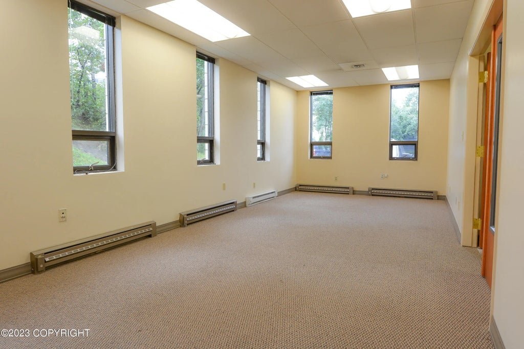 Ground floor private office (669 RSF) with shared waiting area and workroom. Located at the entrance of Coastal Trail, next to 49th State Brewery. On-site and street parking are available. Tenants in this building can receive discounts to utilize the Cowork By RSD location at 911 W. 8th Avenue for larger events gatherings or conference room needs.