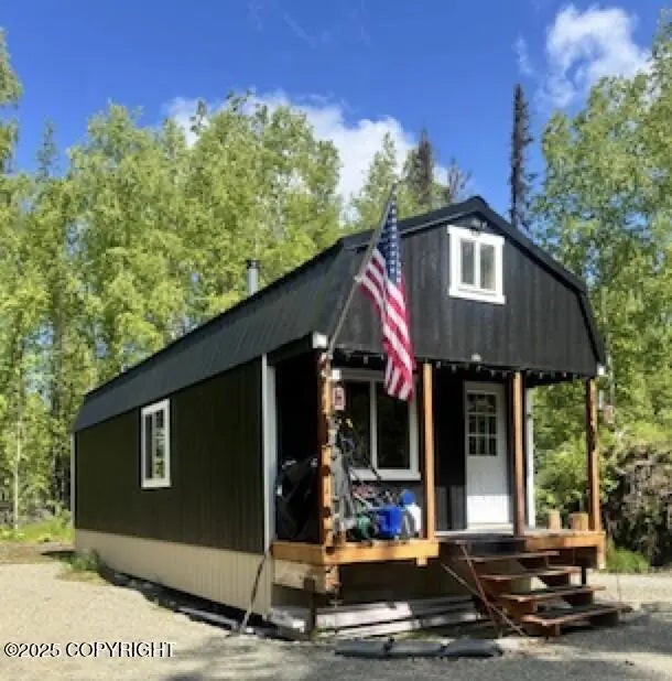This quiet getaway nestled in the woods at the end of a permitted private driveway is your go-to retreat, winter or summer! Minutes from lake access, dining, fishing, and trails, this efficient home comes with so many extras including Electric Meter, Starlink, bluetooth activated heater, wood stove, generator, electric to the outhouse, Ring camera, furniture, beds, and more. Lots of new pavement to get you 90% of the way to your driveway! Book your appointment today and get into your new recreational cabin today and let the good times roll!