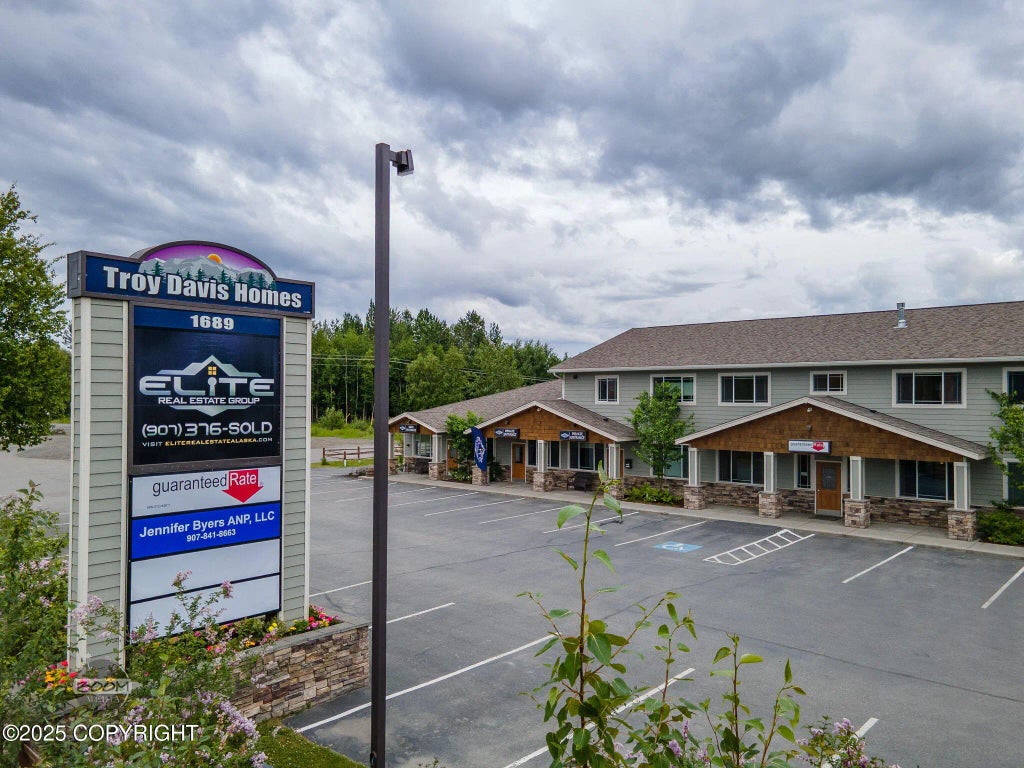 Upscale professional office building available now! 6 office suite with large reception area with double sided gas fireplace, full-size kitchen/break-room & private bath. Great exposure with high traffic count, over 16,000 vehicles per day, easy flat parking. Extra windows & lots of natural light. 1,800 SF office space with an additional 1,200 SF 2 bay garage/warehouse behind. Monument and Marque sign space available. Lease just the office or the entire space.
