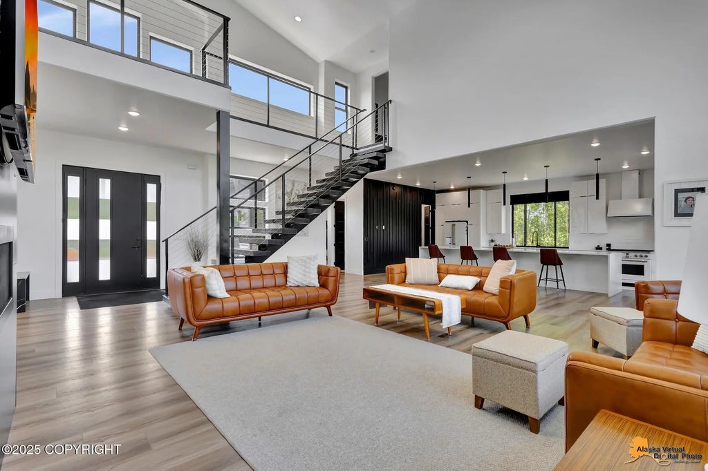 Modern elegance at its finest! This private getaway is an all Alaskan dream home on over 3 acres with stunning views. Every detail and finish was handpicked this home is designed to entertain. Enjoy vaulted ceilings that are perfectly accented by floor to ceiling windows and leads to a covered back deck. Oversized walk in shower and custom tile. Assumable mortgage, with a 5.25 % interest rate.