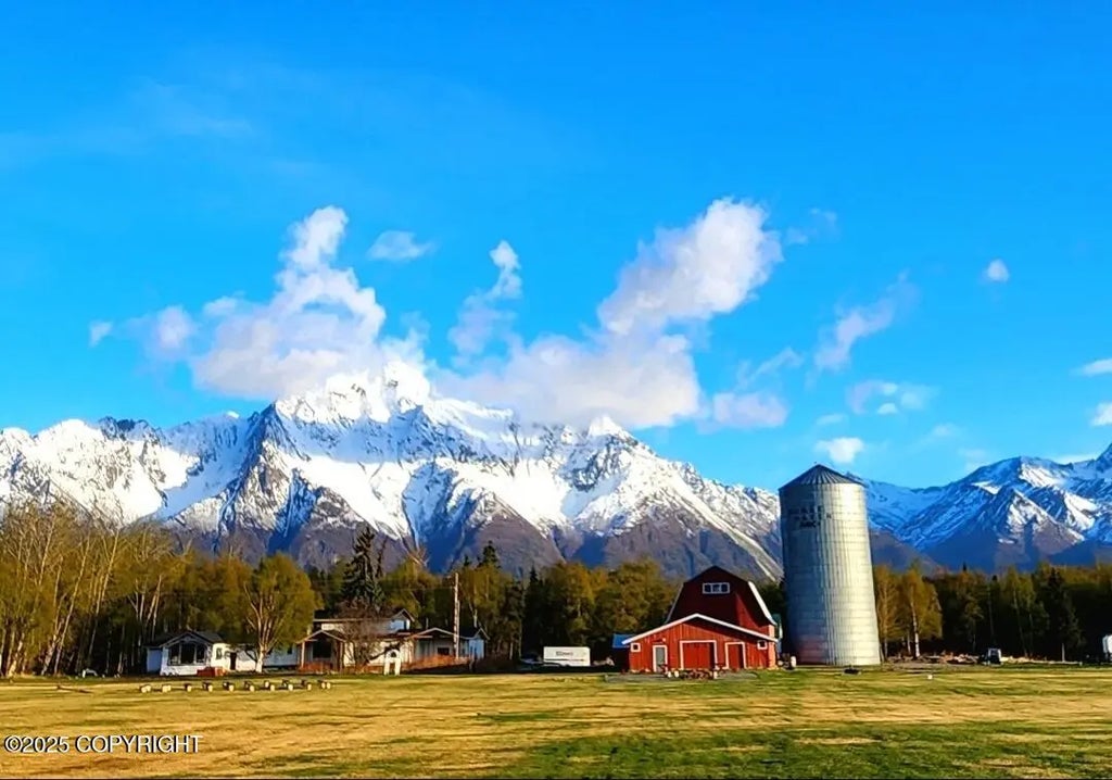 Once in a generation chance to own a Palmer landmark! The most photographed farm in the state! Owner finance 25% down! Amazing reno and development of a 1935 colony era dairy/hay barn into an event hall, 2025 new construction rebuild of the 1955s farmhouse. A gorgeous renovation of the full size heated indoor pool, separate office building, large heated garage, carport shop, and ..... Multiple businesses opportunities possible. Currently the pool house is booked frequently for parties, the airbnb unit is also used as an overnight bridal suite during wedding season. Weddings, memorials, conventions, parties and other events book the event hall. Full sized parking lot and RV parking for events, acres of impeccably maintained lawn and space cleared for 4 future possible airbnb cabins. 4 wells and 2 septic systems including a brand new system. The house was rebuild from the upgraded 2×6 studs. Beautiful kitchen, living room with new FP, 3 Brs including primary suite with FP, family room, den plus a whole airbnb suite off the living room. The dairy barn is now a beautiful 4000 sqf event hall with a gorgeous bar, the 1935 haybarn is about 5400 sqf and has footers poured for a possible future commercial kitchen, bathrooms and 2 other rooms connected to the event hall, the barn loft has been used for events as an amazing old barn dance or wedding venue. Must see photos! 1600 SQF heated garage/shop with a lift, 2400 sqf carport/shop, 220 sqf office, 1800 sqf pool house, 4500 farmhouse sqf including a seperate basement apartment that needs renovated. All sqf is approximate, buyer to verify all information. Owner is a licensed realtor in Alaska and an attorney.