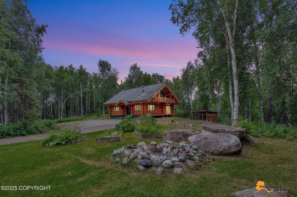 160 ACRES & LOG HOME!! Custom 3 bedroom, 2 bath log home, large shop and second home/apartment with full bath. This off-grid homestead/farm has been in the same family for decades. The 160 acres has been a working hay farm in the past. It's currently home to moose, bears, beavers, swans and abundant wildlife. This craftsman log home features a one of a kind staircase and balcony. The vaulted ceilings and large picture frame windows let in the natural light and also offer a winter view of Denali from the upstairs balcony. The great room is open to the kitchen for entertaining and a large island offers plenty of workspace and storage. The home has a nice crawl space for additional storage. Little Goose Creek runs through the stewardship forest property and feeds three ponds. The resident beavers help maintain the water levels and provide entertainment. The large shop was once operated as an automotive shop, it houses the Northern Lights generator and solar system. The shop features a woodstove, and plenty of storage space. There is a hay or wood storage barn, a generator shed, and a 40' container for storage. The studio style guesthouse has its own septic and well. It has a kitchenette, and a bathroom. There is a finished side with heat and and unfinished side that could be used for expansion or just used as-is for storage. This spectacular property would make an excellent family retreat, farm or hunting lodge.