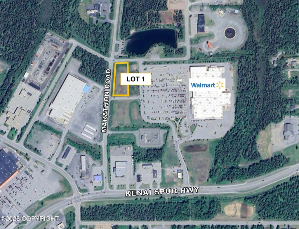 Walmart outparcel located in the city of Kenai on Marathon Road, with easy access to the Kenai Spur Hwy. Great location in the retail hub of the Kenai Peninsula, adjacent to Walmart and in close proximity to Home Depot, Safeway, the Kenai Airport and a variety of smaller retailers and restaurants. Water and sewer are stubbed to site, gas and electric are adjacent.