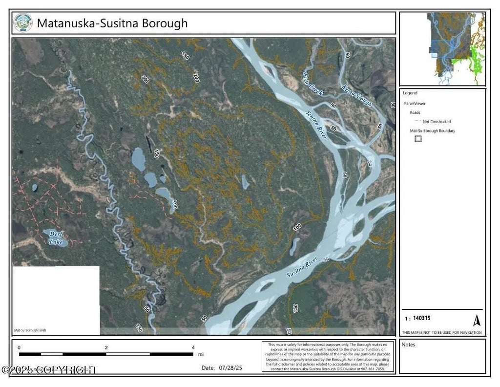 Remote 5-acre parcel located just west of Yensus Lake (walking distance possibly) in the Alexander Creek and Anderson Creek area, west of where the Susitna and Yentna Rivers meet. MSB mapping is outdated, and newer trails may be available in the area. Currently fly over or winter access only. MSB mapping shows the lot is treed and appears to not sit directly on any swamp. Surrounded by untouched wilderness, small lakes, and abundant wildlife, this is an ideal off-grid retreat for hunting, recreation, or a future cabin site.