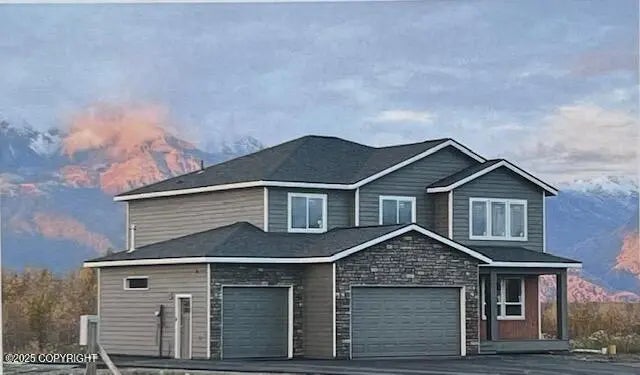 Pioneer Peak is right there! Your home is stratigically placed so you will have unobstructed Mountain views ''Our Standard is Their Upgrade''. Your primary bedroom has a covered porch and you will never want to leave it except to cook in your unbelievable kitchen with entertaining 8' island. Office off entry way and there is an upstairs family room too. Extra Huge Garage.